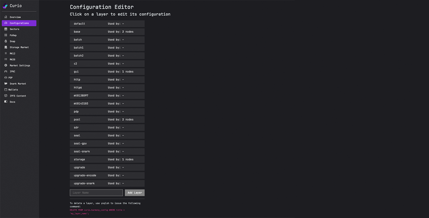 All configuration layers can be found and edited from the `configuration` page of the GUI. It also allows adding new configuration layers via GUI.